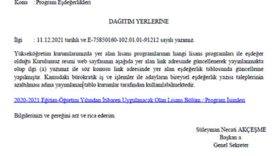 Yükseköğretim Kurulu Başkanlığı, kamudaki bürokratik iş ve işlemler ile adayların bireysel eşdeğerlik yazısı taleplerinin azaltılması amacıyla hazırlanan bölüm eşdeğerlikleri tablosunda…